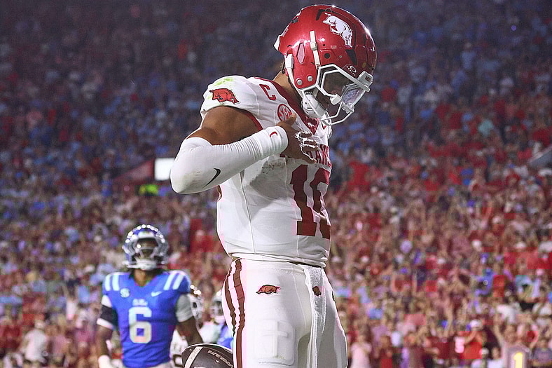 Arkansas QB Taylen Green is the best running QB in the nation when it comes to the big conferences in college football, and after just five games, he already has 441 yards on the ground. That threat opens up his passing opportunities, so he has also been a problem for opposing defenses. Hitting on 62.0 percent of his passes and has 14 total TDs heading into Week 6.