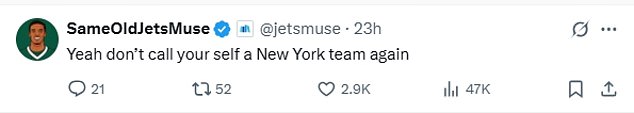One fan wrote: ‘Shouldn’t we root for teams that actually play in the great state of New York?’