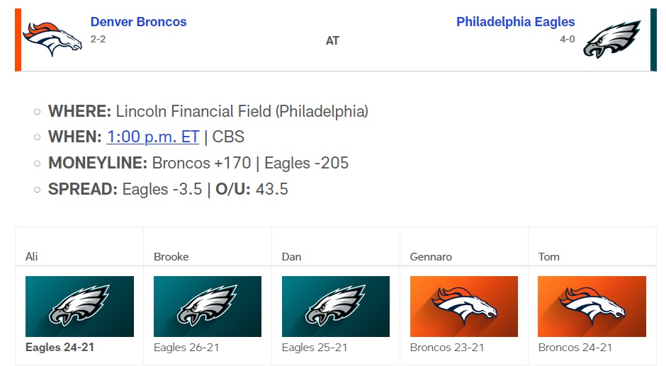 NFL Week 5 picks: Broncos over Eagles and Commanders over Chargers among upset predictions