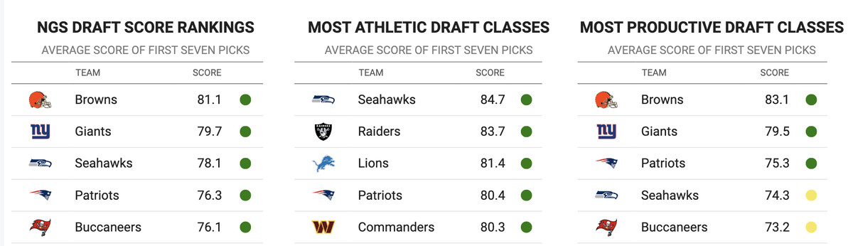 The @Seahawks targeted elite athletes throughout the draft, selecting a league-high four players with an NGS athleticism score of 85 or higher.