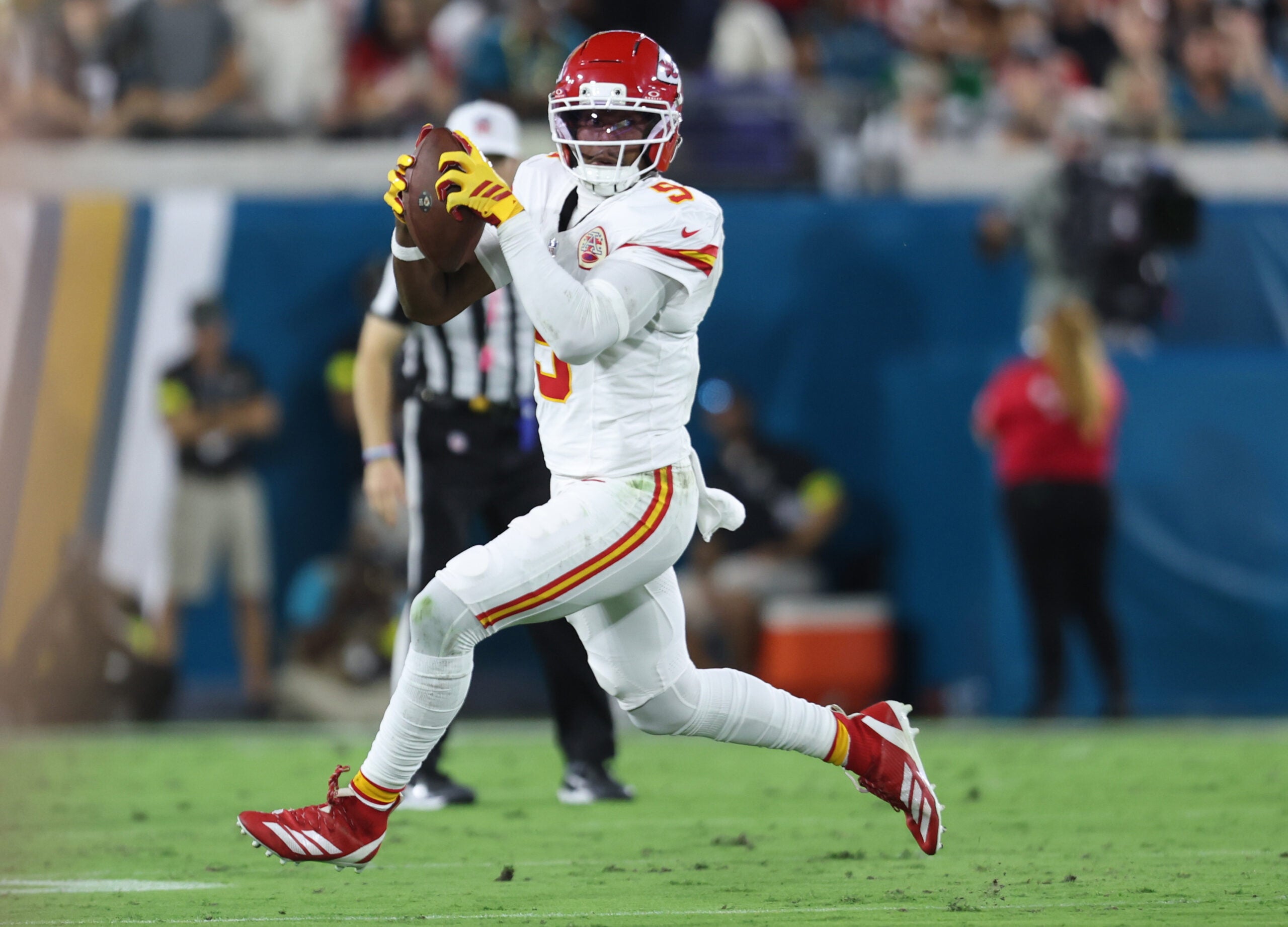 Tyquan Thornton has carved out a gadget-type role for the Chiefs, becoming their go-to vertical threat for large gains through the air. He had three receptions for 90 yards against the Jaguars, including 24-, 32- and 34-yard catches. Arguably his most impressive play was his 32-yard reception, which forced him to come back to the football as Patrick Mahomes threw from midfield on his back foot on a third-and-9. Thornton caught the ball inside the 10-yard line, setting up a Kansas City touchdown.