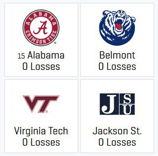 Belmont is in their first NCAA Tournament thanks to winning the Missouri Valley Conference. They are #65 RPI and #72 KPI with their top win being over Eastern Kentucky. JSU’s best win was over Florida A&M, but they won the SWAC. Not sure how Bama got the worst team in the country in their bracket.