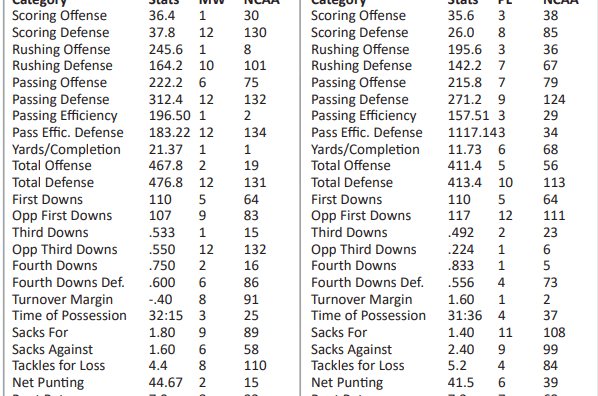 You can see where each team ranks in Conference and Nationally, in some of the statistical categories we mentioned. The Statistical Comparison comes courtesy of the United States Air Force Academies official Digital Game Preview.