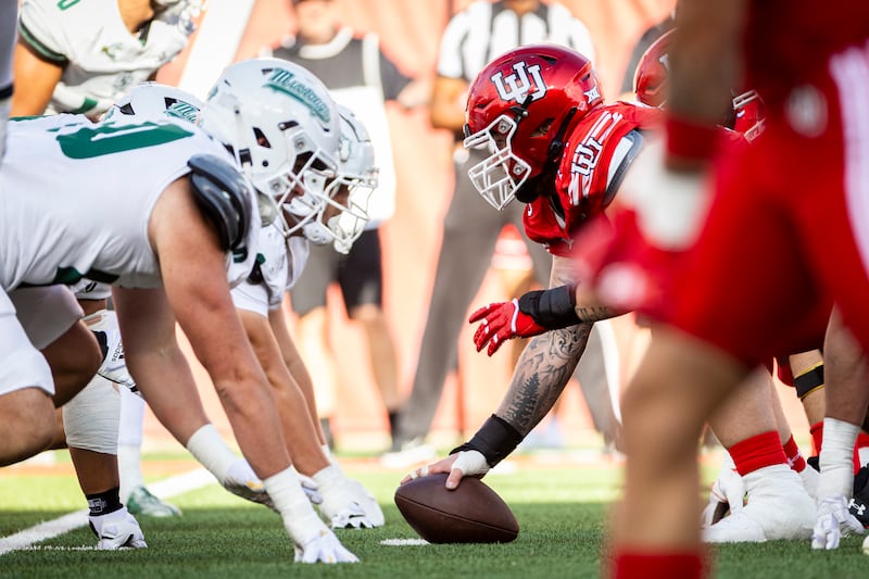 Utah Utes and Cal Poly Mustangs players await the snap from Utah during an NCAA football game between the University of Utah Utes and the California Polytechnic State University Mustangs held at Rice-Eccles Stadium in Salt Lake City on Saturday, Sept. 6, 2025. | Isaac Hale, Deseret News Key players