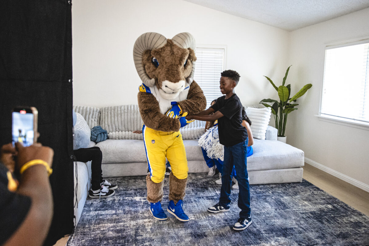 Molly Higgins, Executive Vice President (EVP) of Community Impact and Engagement for the LA Rams, was eager to assist after being absolutely blown away by the family’s selflessness upon initially meeting them. “You’ve lost your home, and yet you’re here to learn about ways to help your community. You know, so cool and inspiring,” Molly recalls before continuing, “They were just so grateful to be alive and said that they were just so appreciative of the community and the way that community rallied around them in such a time of loss.”