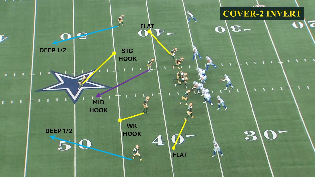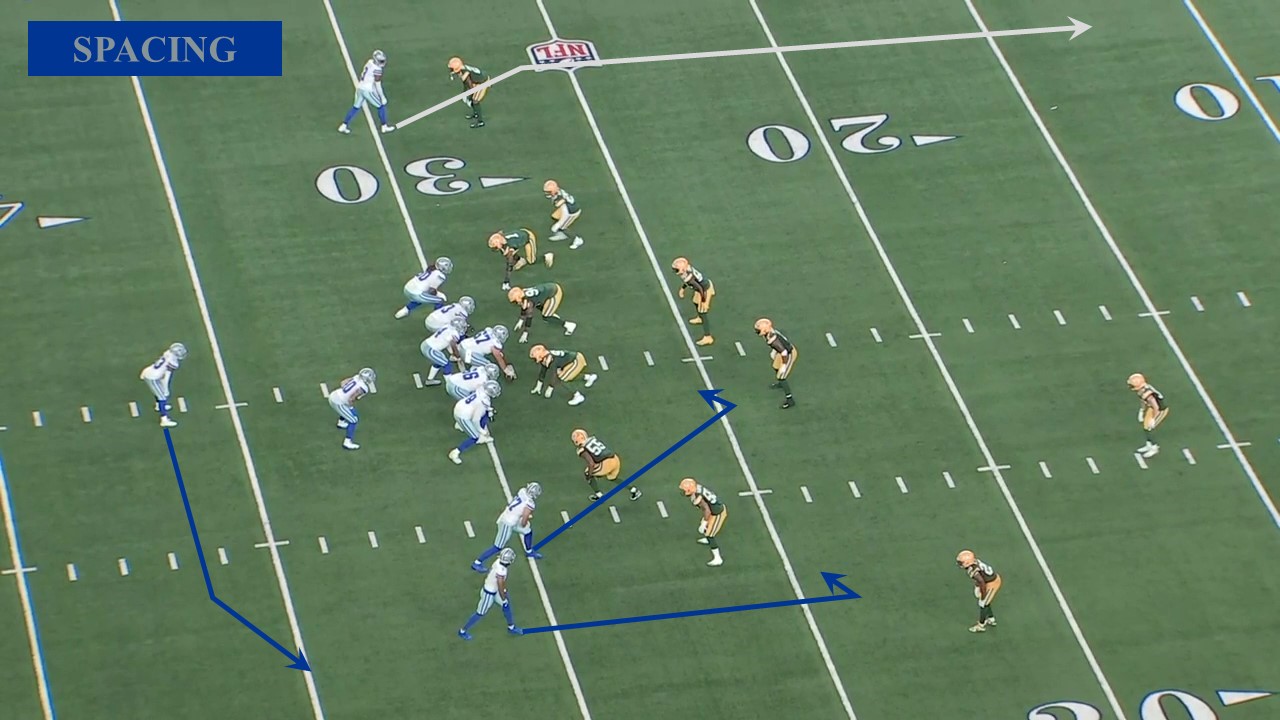 Prescott saw the pre-snap alignment again and audibled the play to a more favorable concept to beat the coverage, betting that in a similar down and distance, the Packers would rotate again to 2-invert. He guessed right.