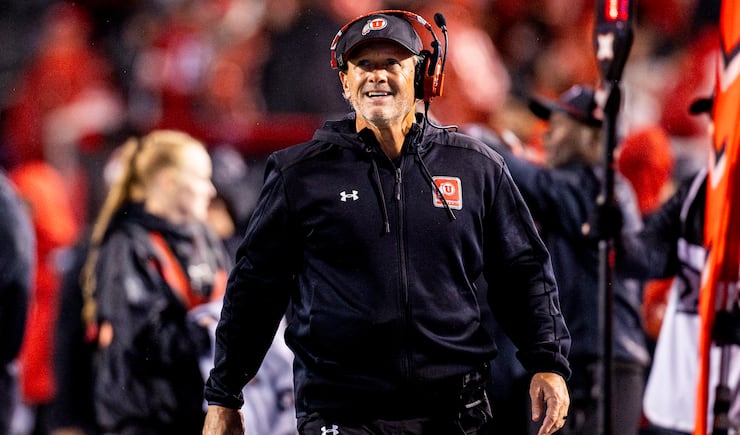 Utah head coach Kyle Whittingham looks to the scoreboard during an NCAA football game against Arizona State held at Rice-Eccles Stadium in Salt Lake City on Saturday, Oct. 11, 2025. | Isaac Hale, Deseret News