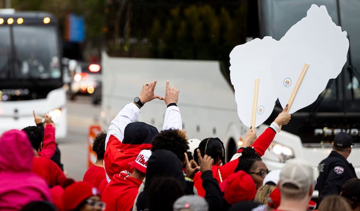 Utah fans cheer as the team arrives before an NCAA football game against Arizona State held at Rice-Eccles Stadium in Salt Lake City on Saturday, Oct. 11, 2025. | Isaac Hale, Deseret News