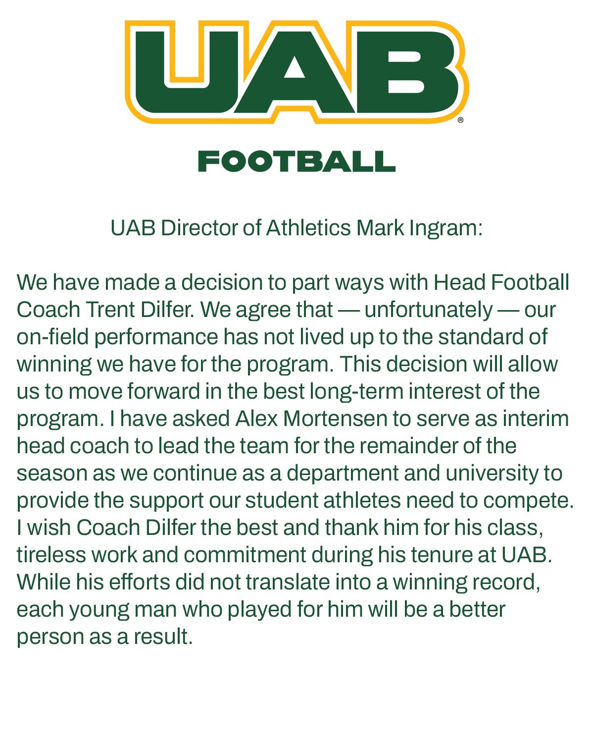 UAB and athletics director Mark Ingram made a bold move several years ago when they hired away Trent Dilfer from a record-setting run in Tennessee high school football. It never panned out at the collegiate level.Â