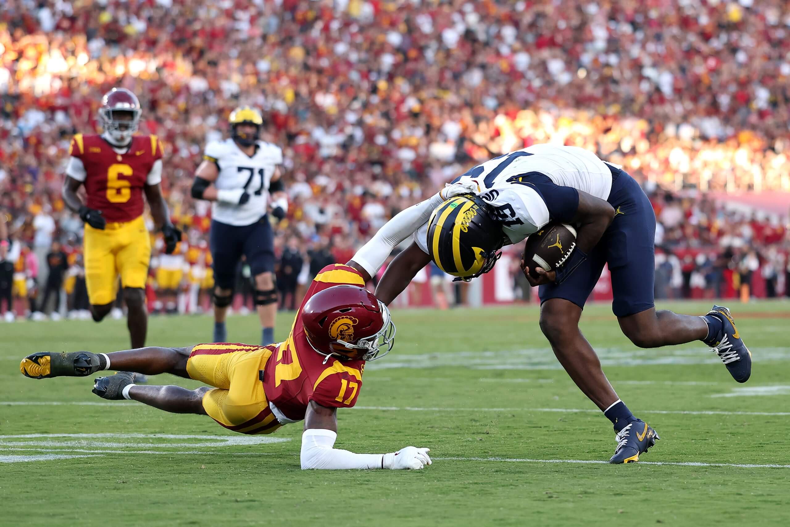 The Wolverines miss Mason Graham, Kenneth Grant and Josaiah Stewart more than they thought they would. They got very little pressure on USC quarterback Jayden Maiava and gave USC’s running backs too many big holes. Some of those big plays could have been contained with better open-field tackling, but that wasn’t a problem when Michigan’s defensive front was stuffing everybody at the line of scrimmage.