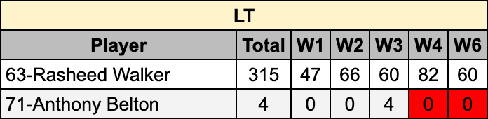 While Ben Sims did get his first offensive snap this season this week, it came on a kneeldown, which we aren’t including in our data. So he hasn’t played a “true” offensive snap yet this season.