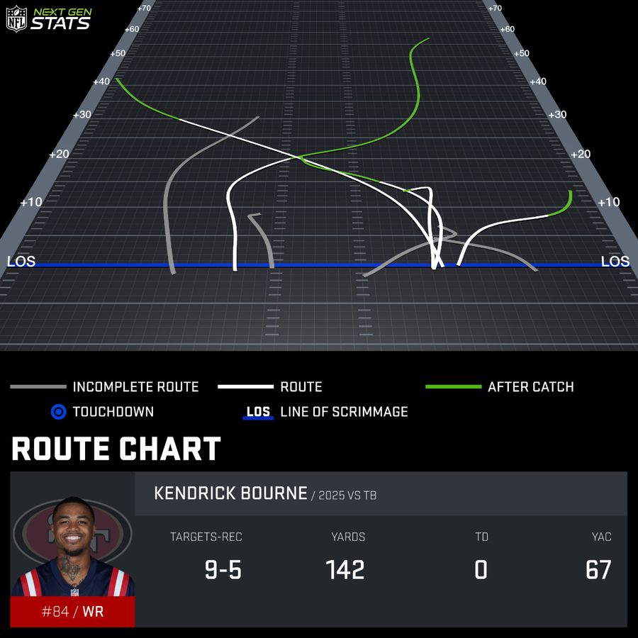 There was another play where Bourne would have had a first down after making his defender fall on a route, but Mac Jones had already moved on from his progression.