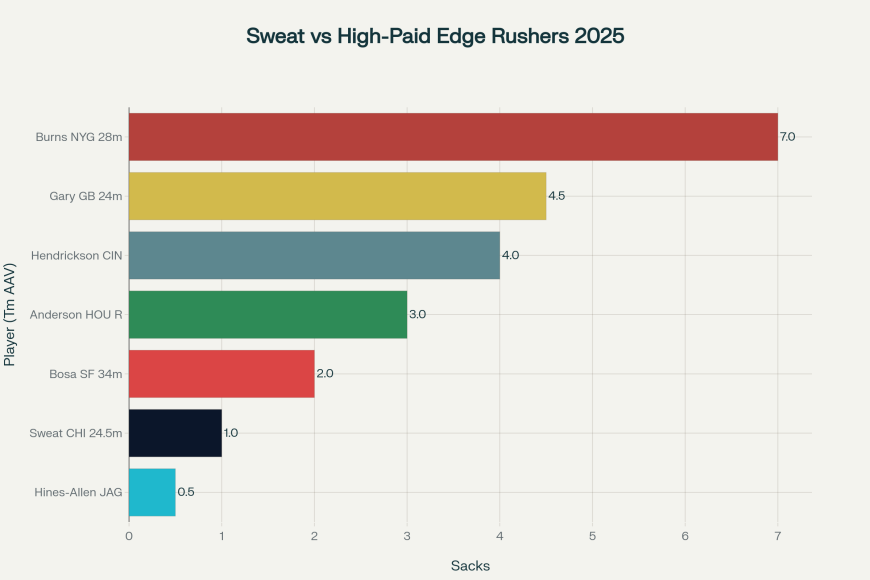 Let’s get this out of the way: $24.5 million per year puts Sweat in the top 10 of edge rusher salaries. That’s star-level money for a guy who, right now, isn’t living up to the price tag. When you’re sitting next to names like Brian Burns, Trey Hendrickson, and Rashan Gary on the salary sheet, expectations come with the territory. You’re paid to destroy game plans. Sweat’s been more of a mildly inconvenient breeze off Lake Michigan.