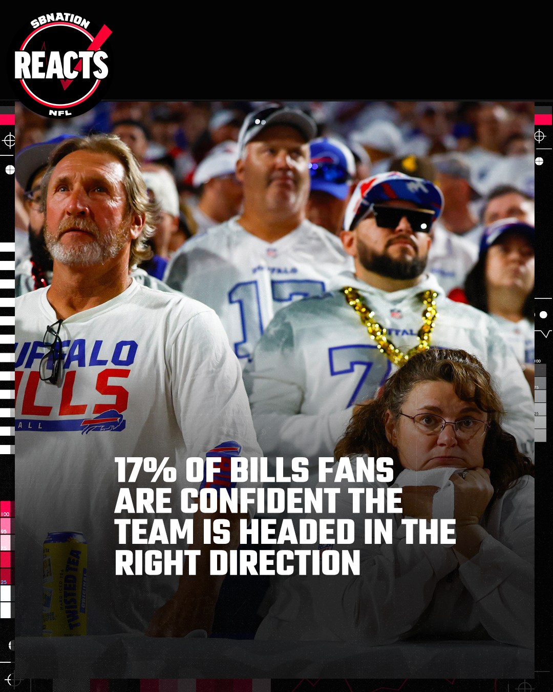 As was the case last week, just 17% of voters remain confident in the direction of the team. Fitting, right? If anyone drives that confidence, it’s quarterback Josh Allen. It’s also true that QB17 isn’t playing his best football right now. That’s meant something to our core of voters who for a month straight now appear firm in their belief that this team isn’t cutting it.