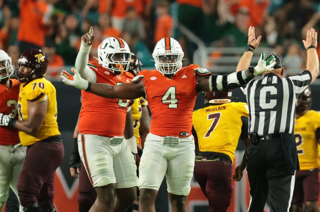 While it’s unlikely the Ravens will have this high of a pick, especially once star QB Lamar Jackson returns following the Week 7 bye, it’s clear they could use a pass rusher of Bain’s talent level. The 6-foot-3, 275-pound Hurricanes EDGE currently ranks eighth in the FBS with 24 pressures and has the elite athleticism to play all along the defensive line at the next level.