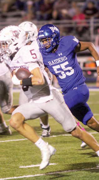 Gaige Gayton in pursuit of the Cobras quarterback after forcing him out of the pocket.
