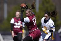 Augustana University and Concordia University, St. Paul players compete during a women’s college flag football game, April 7, 2025, in St. Paul. Minn.