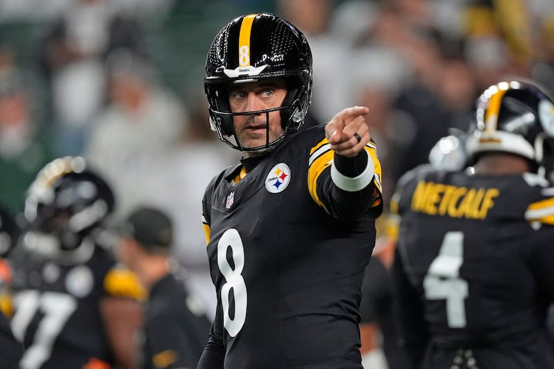 Aaron Rodgers Pittsburgh Steelers Pittsburgh Steelers quarterback Aaron Rodgers (8) warms up before an NFL football game against the Cincinnati Bengals in Cincinnati Thursday, Oct. 16, 2025. (AP Photo/Carolyn Kaster) (Carolyn Kaster/AP)