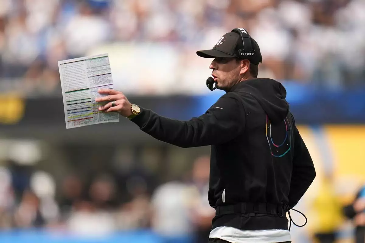 Indianapolis Colts head coach Shane Steichen on the sideline during the first half of an NFL football game against the Los Angeles Chargers Sunday, Oct. 19, 2025, in Inglewood, Calif. (AP Photo/Gregory Bull)
