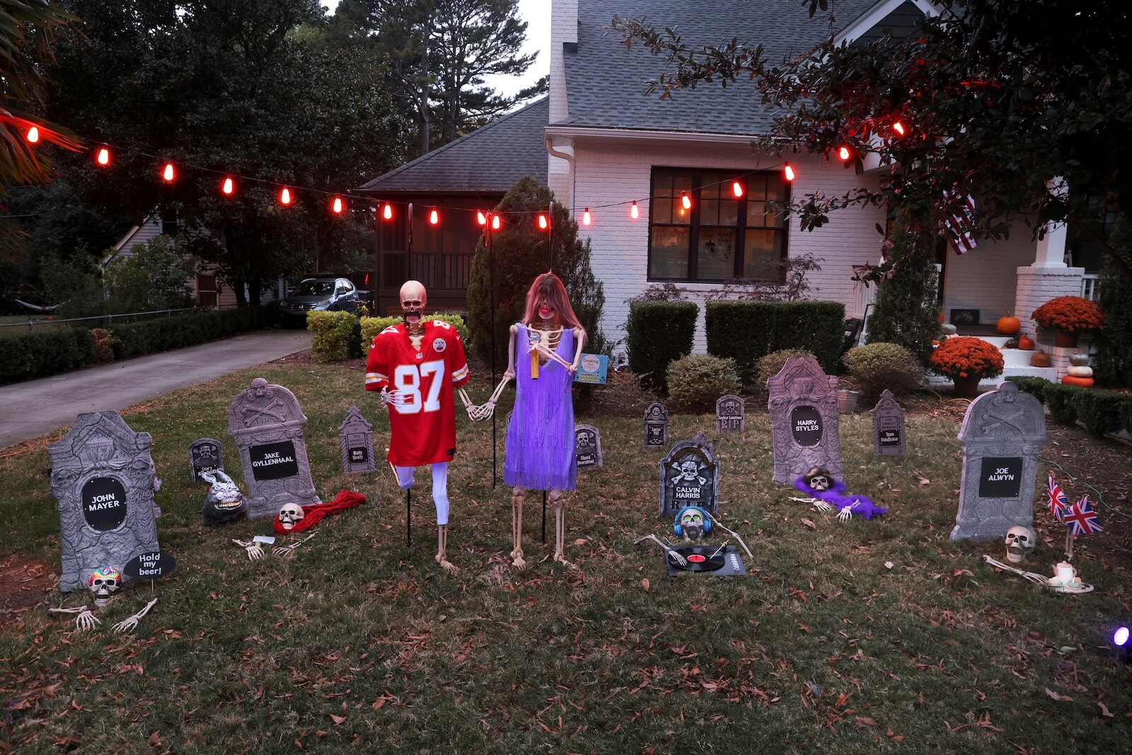 The Dove household display at Halloween 2023 commemorated Travis Kelce and Taylor Swift. (Courtesy of Travis Dove)