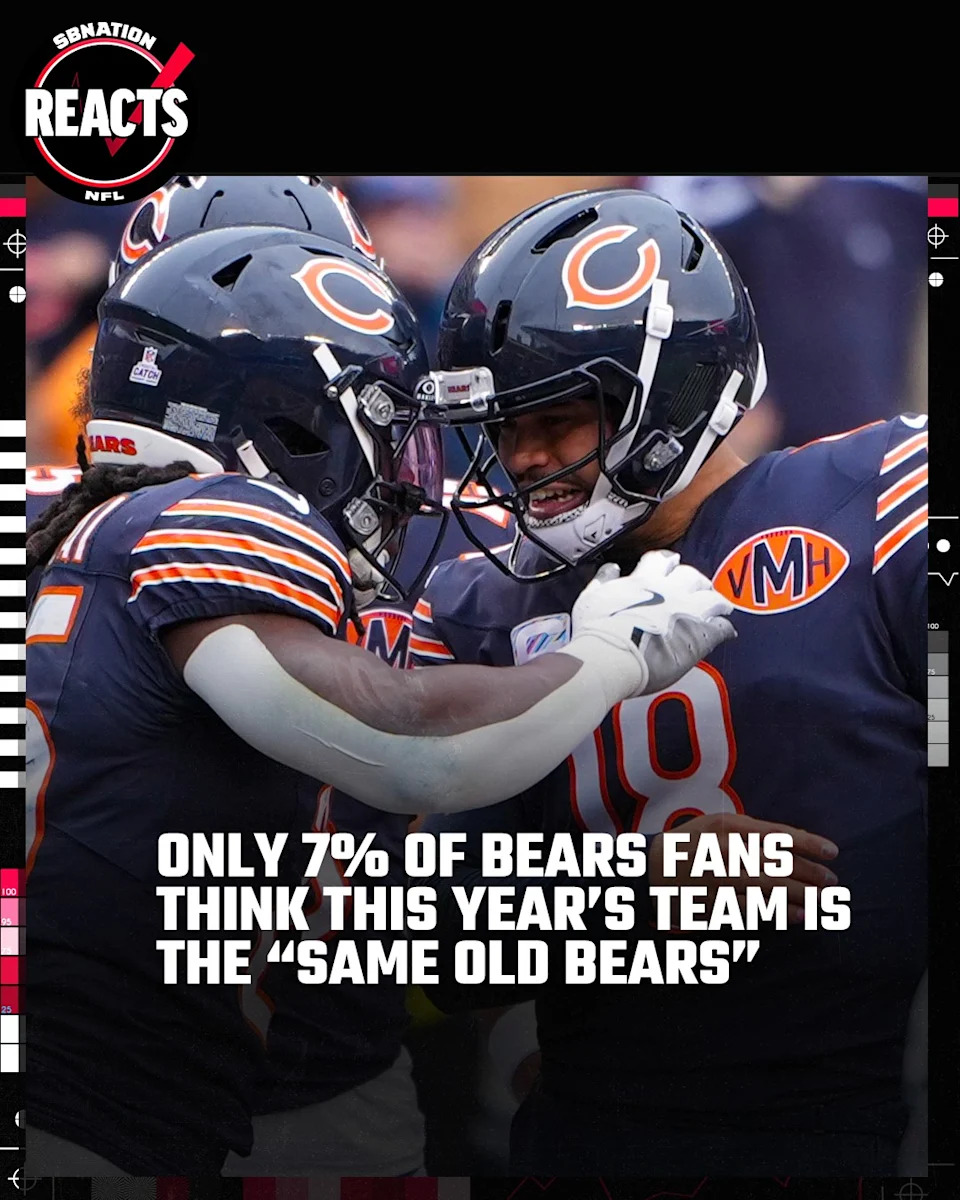 In our Reacts survey earlier this week, we also asked whether you think this is still the same old Bears, and 7% of our fans think so. They aren’t ready to move on from all the pain this franchise has given us over the years.