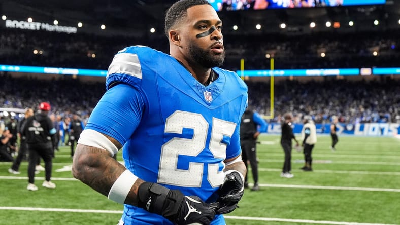 Detroit Lions safety Jamal Adams (25) walks off the field after 34-31 win over Green Bay Packers at Ford Field in Detroit on Thursday, Dec. 5, 2024.