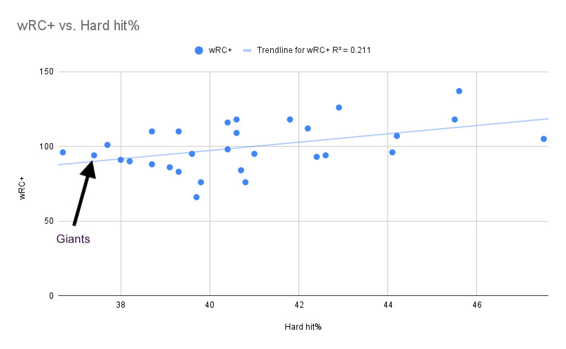 There’s no way to gussy up these numbers. The Giants are last in the NL and 29th in baseball in hard-hit percentage, which is defined as a ball that leaves the bat at 95 mph or faster. The marine layer at Oracle Park isn’t thick enough to affect the speed of the ball off the bat, so this isn’t a ballpark thing.