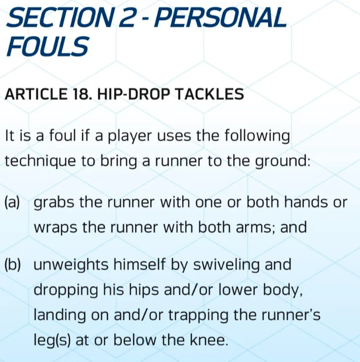 The hip drop tackle was banned due to the risk for offensive players, which was proven out by Skattebo’s injury.