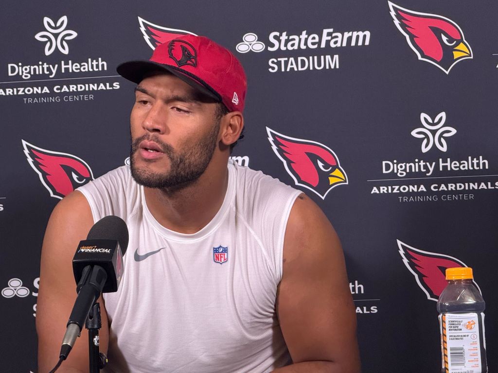 Arizona Cardinals linebacker Zaven Collins speaks with the media at the Cardinals practice facility on Tuesday, October 28, 2025 in Tempe. (Photo by Stephen Smith/Cronkite News)