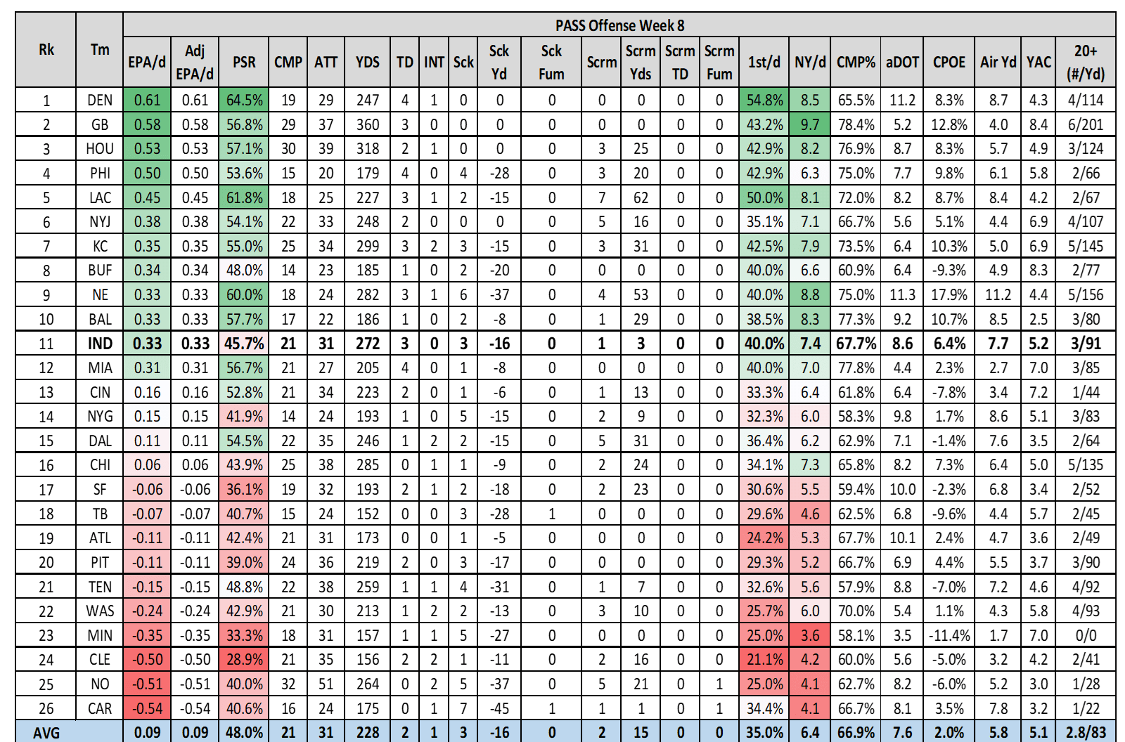 On the season, I have the Colts’ passing attack ranked 3rd after adjusting for opponent.