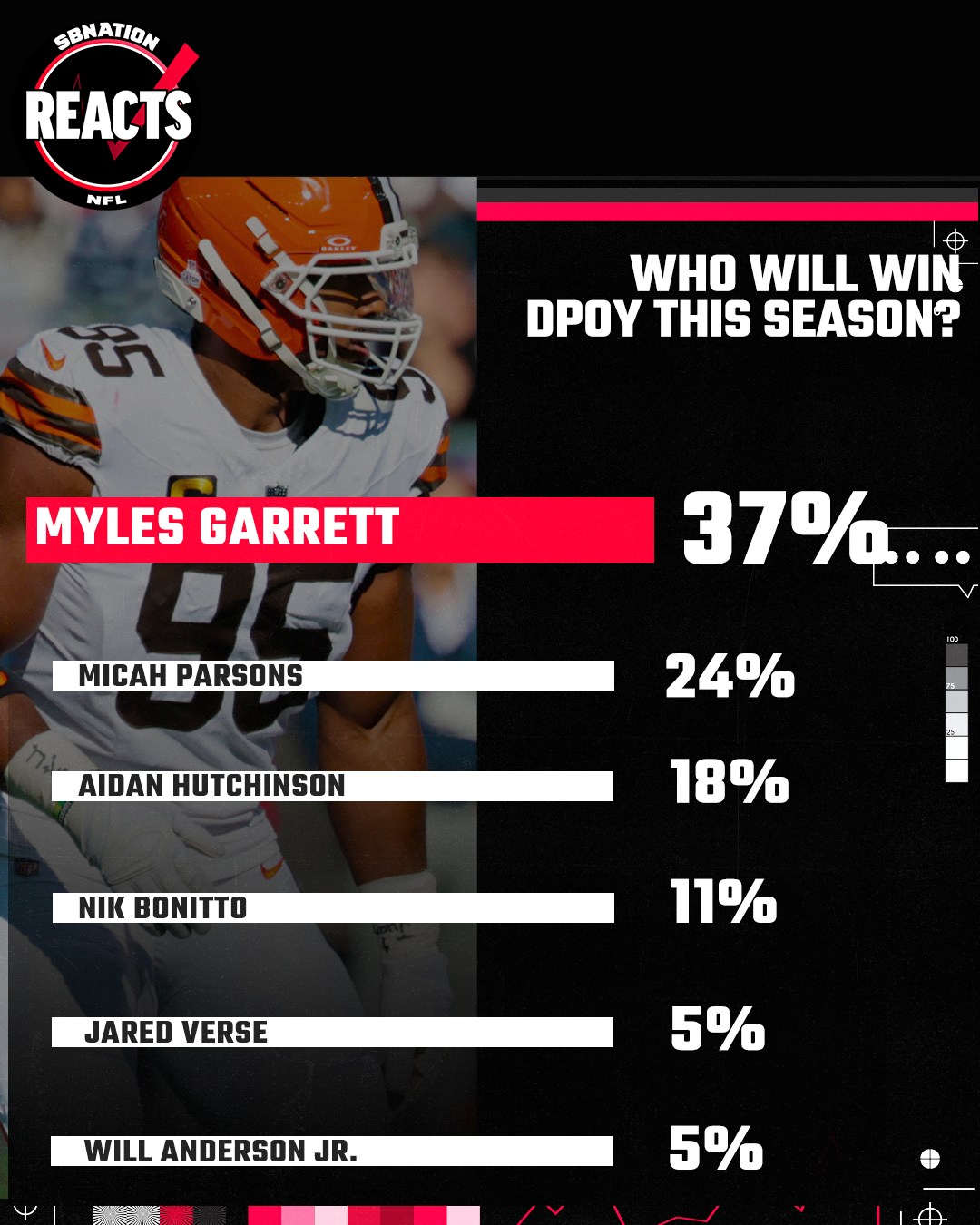 Instead, it was the Defensive Player of the Year award, for which Micah Parsons is one of the leading candidates. However, despite currently being FanDuel sportsbook’s favorite for the award, Parsons finished second in fans’ voting, getting just under a quarter of the vote. Instead, it was Myles Garrett of the Cleveland Browns who took the top spot, doing so with a whopping 37 percent of the vote.