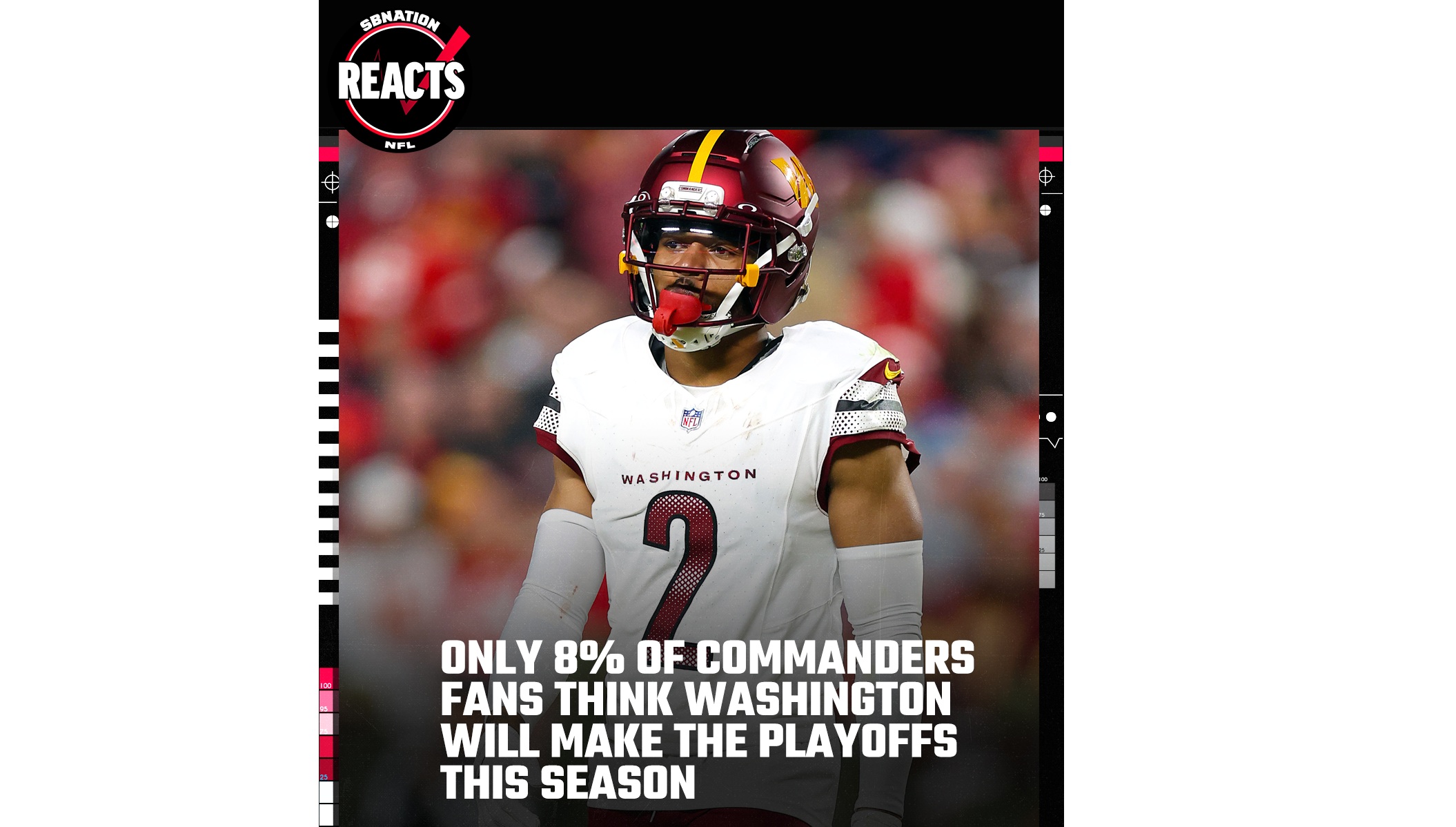 After only 8 weeks of an 18-week season, Commanders fans who answered our Reacts survey this week are almost totally checked out on the possibility of their favorite team making the playoffs or achieving any of the championship goals — division, conference, league — that they hoped for with varying levels of fervor at the start of September.