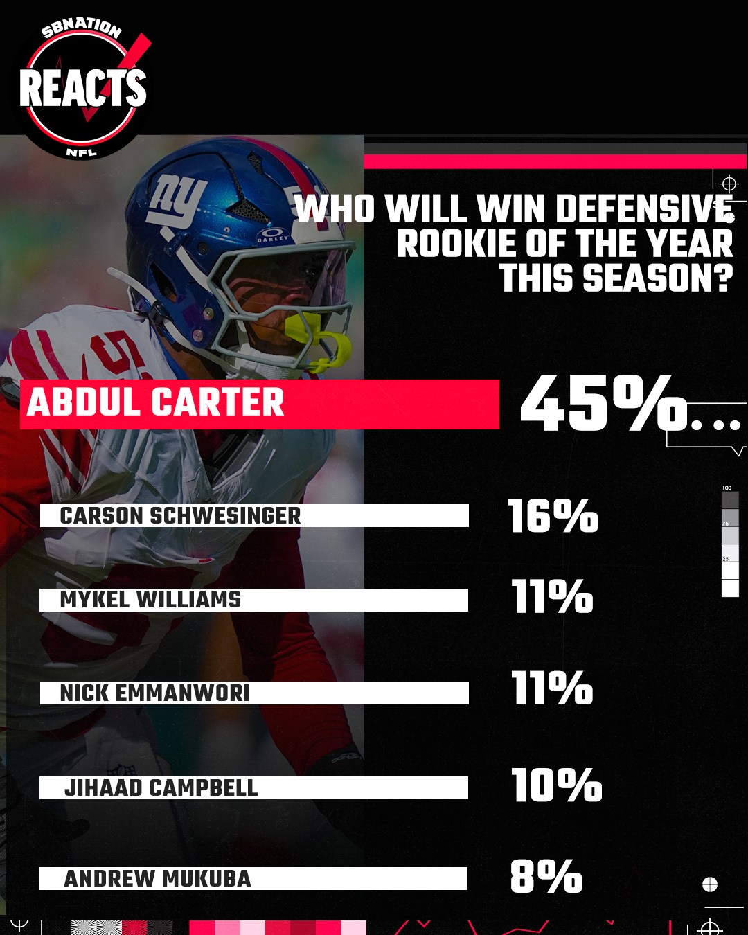 National polls also asked voters to consider potential Player of the Year award winners, and the defensive candidates/votes might surprise Bills Mafia. That’s because Bills rookie defensive tackle Deone Walker is nowhere to be found here. Despite an impressive stat sheet that includes 17 tackles (12 solo), seven tackles for loss, two quarterback hits, and one sack in seven games (6 starts), Walker cedes votes to other more highly drafted defensive players. Perhaps an impactful afternoon against Mahomes and company will sway some voters?