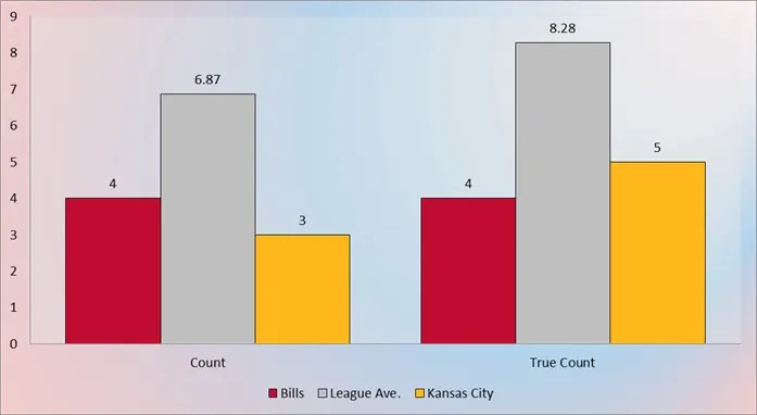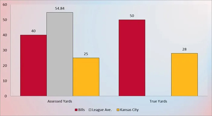 Negated yards skew things against Buffalo, but remember that there’s more to flags than yards or even impacted or “true” yards, and Kansas City had two declined penalties where the biggest mistake on the field was something other than the flag.