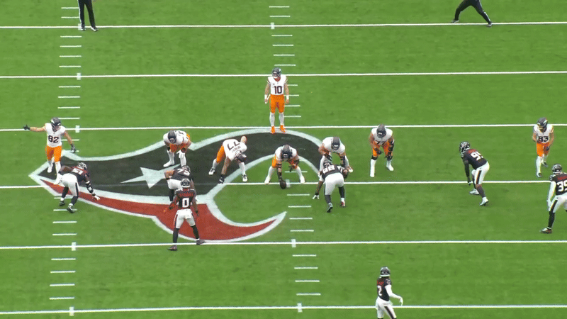 He was strong in pass protection all day long. We’ll take a look at one of his mistakes, but it wasn’t horrible. For the most part as long as he was able to absorb the initial impact or counter the initial pass rush, these Houston Texans defenders weren’t doing a dang thing. He only got beat on a stunt. Bull rushes weren’t working, speed rushes weren’t working, and he didn’t give the edge rushers any space to work with.