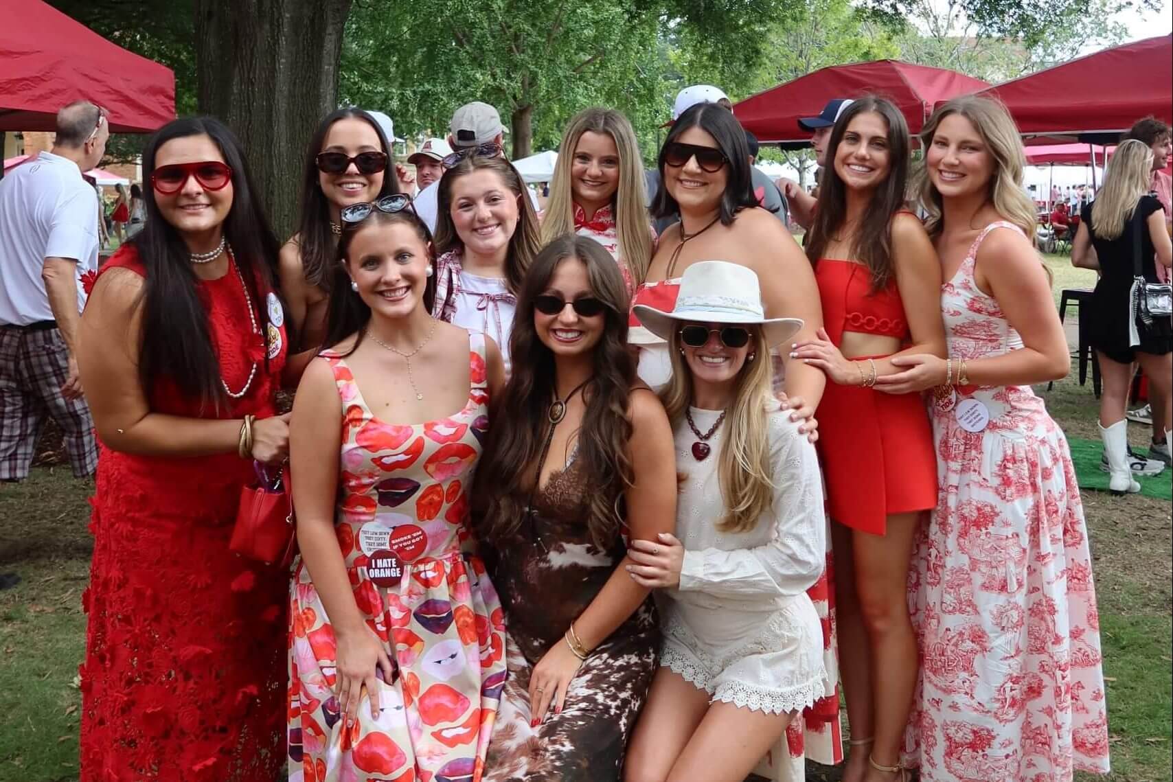 Clusters of women flock two minutes toward the Quad by early afternoon. There, white tents bloom beneath oak trees, crimson cloth drapes tables, smoke curls from grills and country music shakes the air. Women weave through their families and friends and make a toast before a tide of bodies begins streaming into Bryant-Denny.