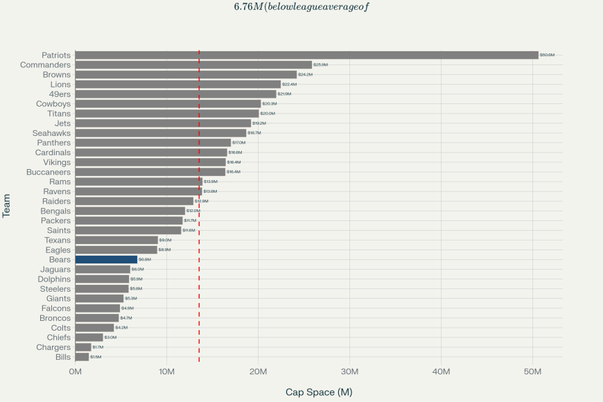 Chicago Bears 2025 Cap Space in comparison to the League Average.