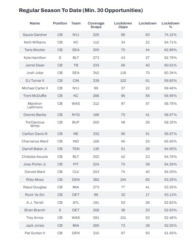 NFL Lockdown Report: Best defenders at preventing separation in coverage