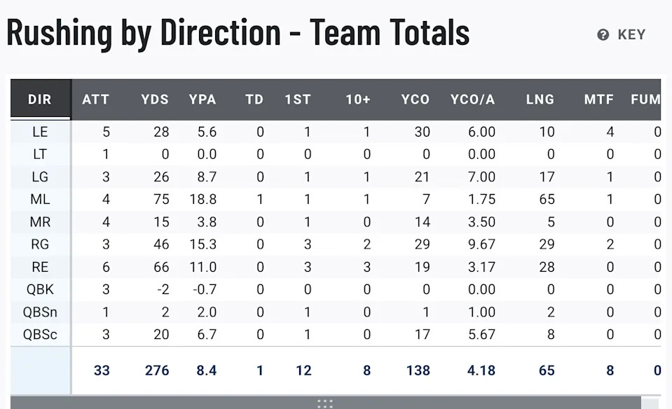 Johnson is way too perceptive and creative not to exploit this massive vulnerability. Expect variations of crack-toss, outside zone, and other rushing attempts to the outside.