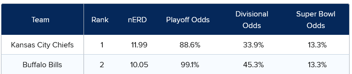 “The Kansas City Chiefs were rated high enough coming into the week that even a road loss to the Buffalo Bills couldn’t take them down from the top spot in our rankings.” — Annie Nader