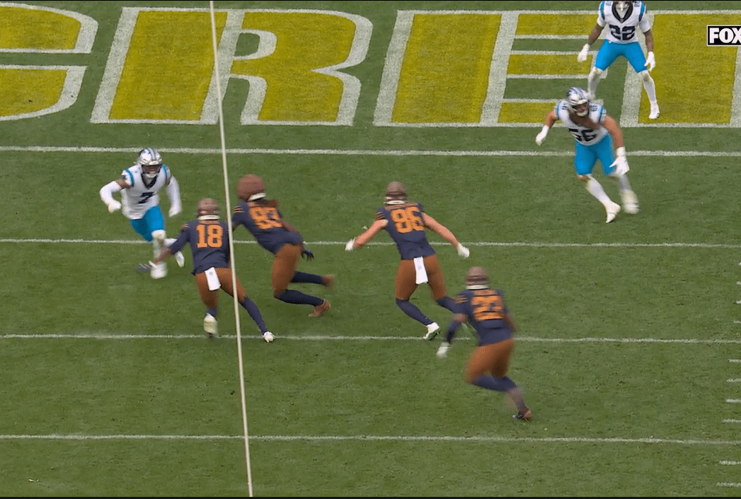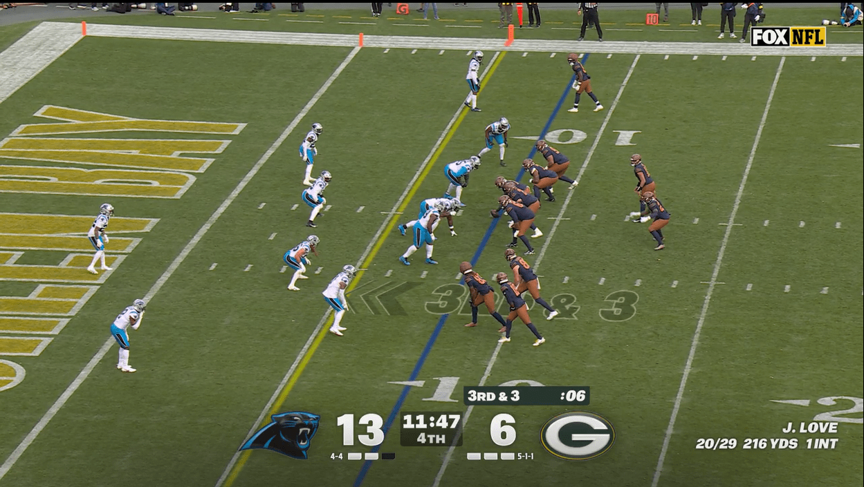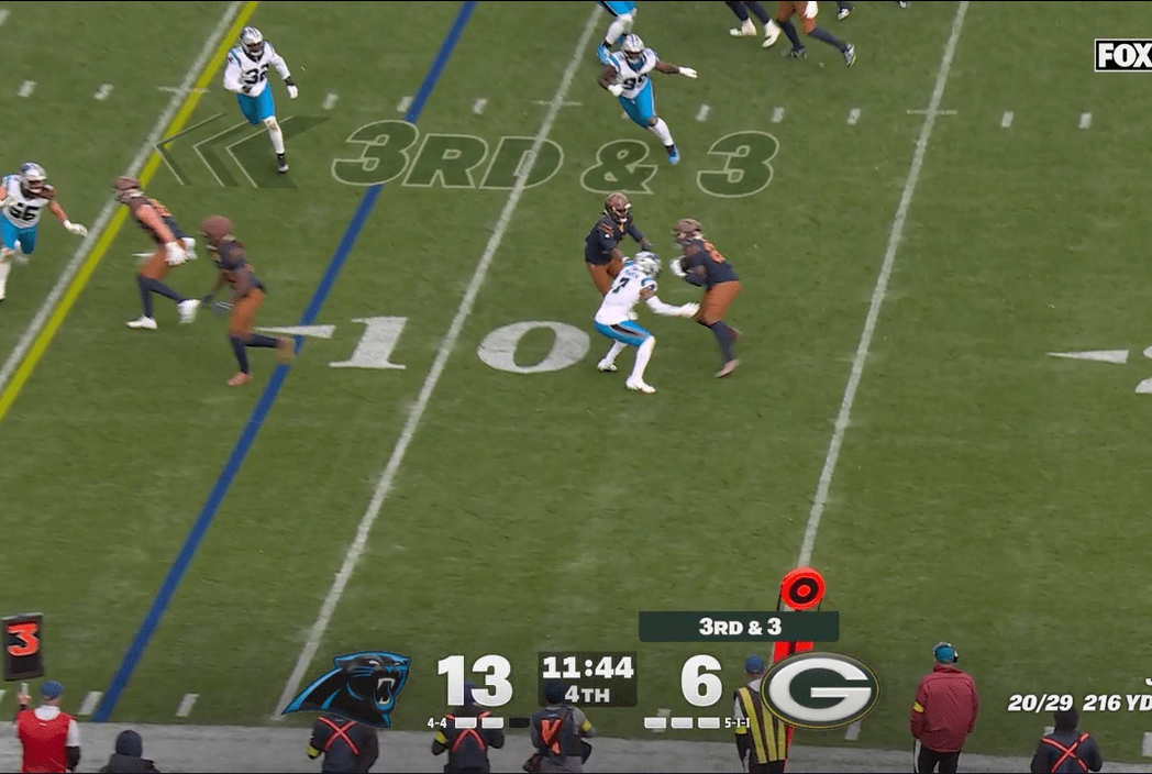 The Packers love screens of all kinds, but they’re not great at them, and when they do work, they tend to involve tight end Tucker Kraft, who was out of the game at this point. It also helps if the opposing defense is poor at tackling, or poor at defending pass-catching running backs, and that’s not the case with the Panthers. Carolina has a lot of flaws, but they entered the game third in defending pass-catching backs and actually got slightly worse (they are now fourth) due to Chris Brooks’ efforts in this game.