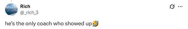 ‘He’s the only coach who showed up,’ another wrote with a string of ‘laughing emojis’.