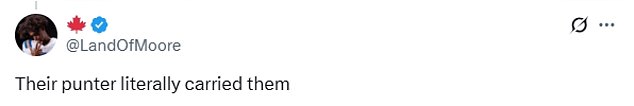 Taking to X, one confused fan wrote: ‘Special teams is their only bright spot dawg’.