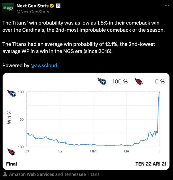 In recent seasons, the Arizona Cardinals seemed pre-programmed to lose games that should be unlosable. This team has given us several of the wildest win-probability graphs in the Next Gen Stats era: