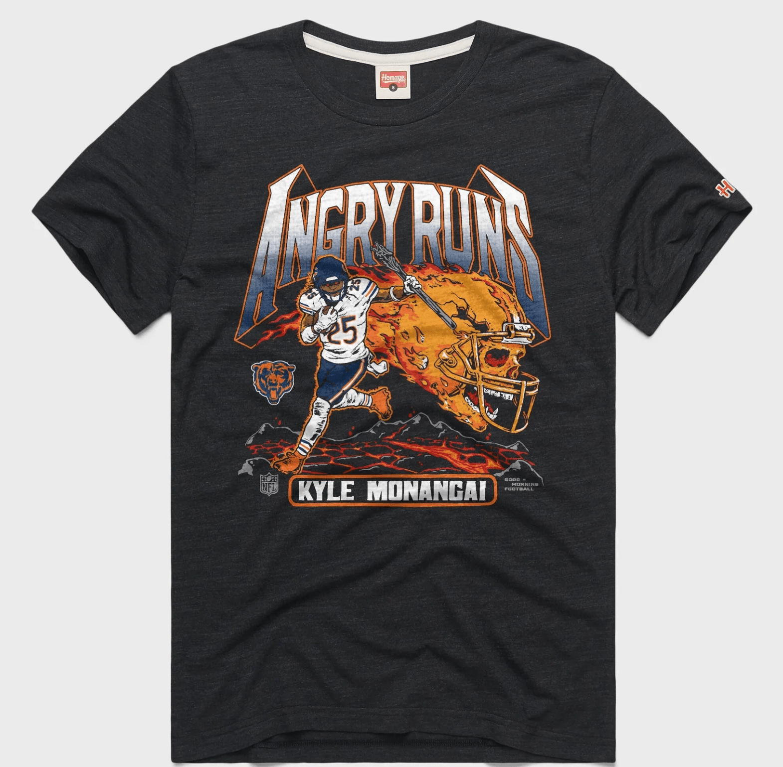 Our guys at HOMAGE have the Monangai Angry Runs t-shirt available for you to show your support for the Bears and for Kyle Monangai!