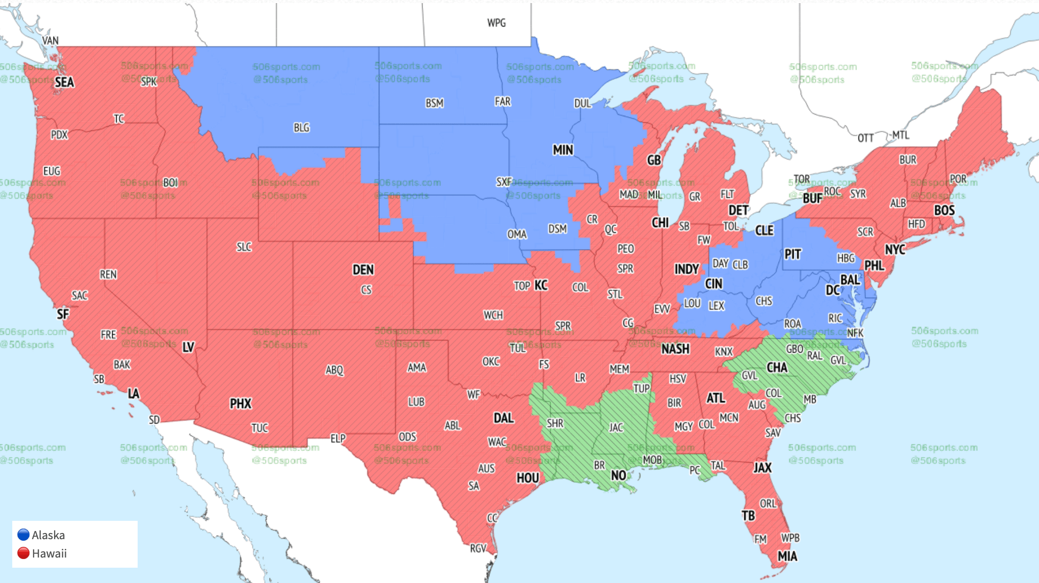 The game will be on FOX with Joe Davis and Greg Olsen on the call. If you live in the red of this 506sports.com map, then you’ll get to see the game.
