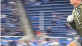 Detroit Lions wide receiver and Michigan native Isaac TeSlaa warms up at Ford Field on Sunday, Nov. 1, 2025, ahead of the game against the Minnesota Vikings.
