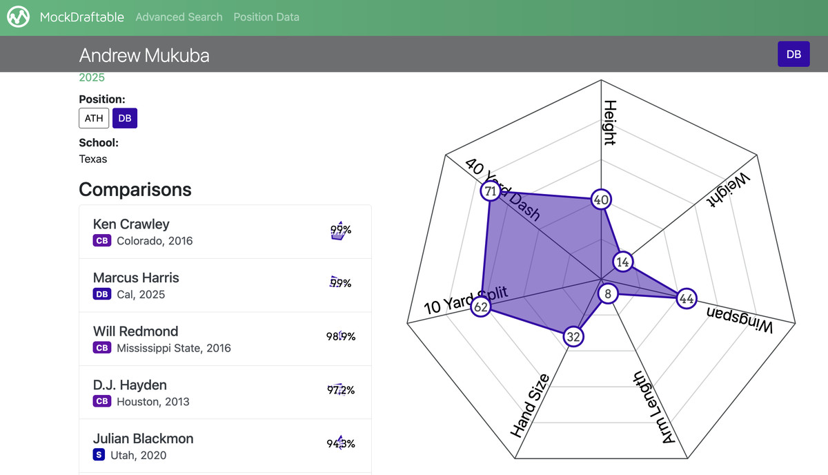 Mukuba, who turns 23 this season, began his collegiate career at Clemson before transferring to Texas last year. He notably had five interceptions for the Longhorns in 2024.
