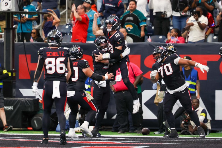 Woody Marks scores the Texans ‘ first touchdown of the day on Sunday. Credit: Jack Gorman