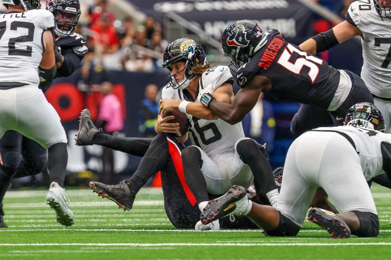When the Texans needed to, they smothered Trevor Lawrence. Credit: Jack Gorman